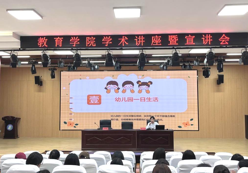 为进一步提升学前教育人才培养质量,紧密对接行业前沿需求,开拓优质就业渠道,教育学院于5月27日在报告厅举办幼教专题讲座暨就业宣讲会。全椒县十字镇中心幼儿园保教主任张媛媛与唐洁担任主讲嘉宾,2023级学前教育专业136位学生参加。