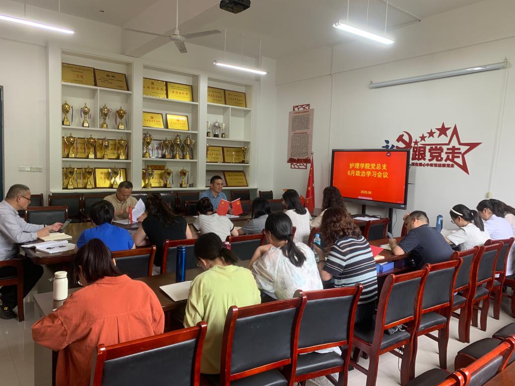 6月5日,护理学院党总支在仁德楼党员活动室召开6月政治学习会议,会上集中学习了习近平总书记的重要文章《加快建设教育强国》《八项规定改变中国》《党的十八大以来深入贯彻中央八项规定精神的成效和经验》等材料。会议由护理党总支书记席民主持,护理学院全体党员教师参会。
