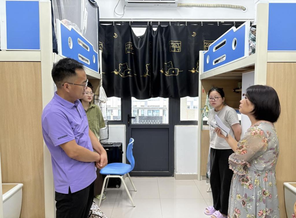 报到结束后,学院党政班子成员及新生班主任深入学生宿舍,亲切看望刚刚入住的新生。“从哪里来?”“住宿还习惯吗?”院领导与同学们亲切交流,细致了解他们的入住安排和适应情况,并强调宿舍是生活育人、文化育人的重要阵地,鼓励大家共同营造整洁、和谐、积极的宿舍环境。