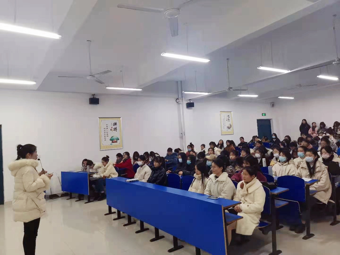 12月24日下午,教育系在C1南1104公共教室举办幼儿园教师资格证面试辅导讲座,教育系副书记徐立娟应邀担任主讲。2018级学前教育专业(高专)、2016级学前教育专业(初专)及2018级早教专业13个班级200余人参加了此次讲座活动。