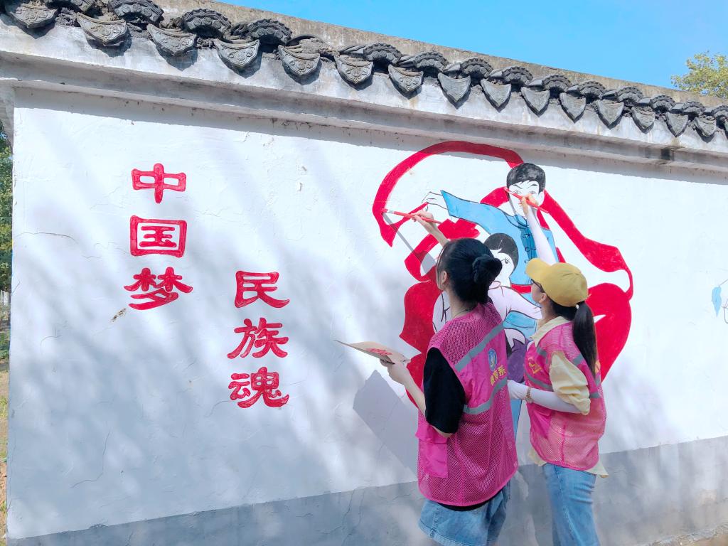 9月17日,教育系组织12名学生志愿者,前往全椒县石沛镇,开展主题为“提升乡风文明,助力乡村振兴”的志愿墙绘服务活动。
