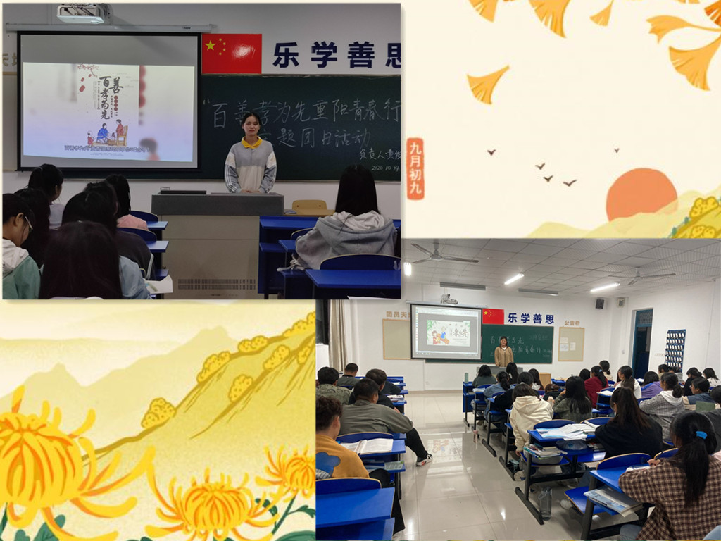 医学系各班团支部以讲解重阳知识、观看重阳节视频和讨论交流重阳节的习俗等形式开展了主题团会。学生们纷纷交流起家事,回忆与家中老人相处的时光,并表示要抽空回去看看。