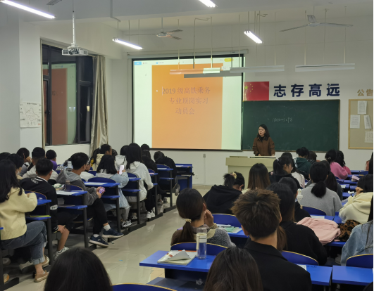 11月1日,2019级高铁服务专业学生赴上海开展顶岗实习实践教学活动,管理系举行了欢送仪式。