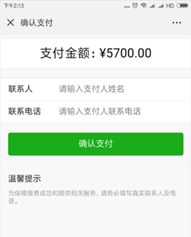 第三步:点击“确认支付”,进入微信支付,完成本次缴费。支付成功后,可收到微信的支付凭证及微信公众号推送的缴费成功通知,以便查看缴费详情。