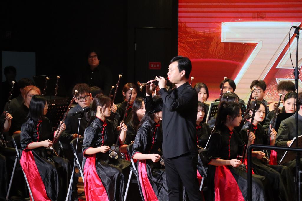 活动在气势磅礴的器乐合奏《庆典序曲》中拉开帷幕。竹笛重奏《跑旱船》演绎了浓郁的地方风情、民族色彩;《庆丰收》《战马奔腾》等节目旋律激昂、铿锵有力;女声独唱《芦花》、男声独唱《两地曲》歌声嘹亮,激情四溢;唢呐独奏《百鸟朝凤》旋律热情、欢快,时而婉转,时而激昂;《太阳颂》《挑山》《春华秋实》等节目节奏或明快抒情,或气势磅礴,或低缓悠长,将全场气氛推向高潮,现场欢呼声、喝彩声不绝于耳;最后,在《龙腾虎跃》轻重缓急的鼓乐变化中,活动落下帷幕。乐团指挥和团员们精神饱满、激情飞扬,共演绎了12首精彩节目,展现了多彩的民族文化魅力,给现场观众带来了视觉与听觉的双重盛宴。