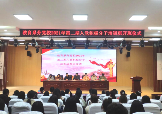 2021年11月17日下午14时,教育系分党校在教育系报告厅举办2021年第二期培训班开班仪式暨第一讲。系党总支书记钱庆兵、系党总支委员、教工支部委员、学生支部委员、班主任潘虹老师及本期师生学员参加了开班仪式。开班仪式由教育系党总支副书记徐立娟主持。仪式伊始,钱庆兵致开班辞,他首先向推荐参加本次入党积极分子培训班的优秀学员们表示欢迎和祝贺。他表示,参加本次入党积极分子培训班的每位学生,均是通过严格审查与评选...