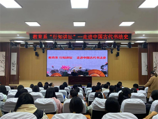 为丰富同学们的校园生活,帮助他们感受中国汉字和书法的魅力,全面提升本系学生的文化素养,加强美育教育的的熏陶,教育系于11月29日下午16点20分在报告厅开展行知讲坛之走进中国古代书法史。本次讲座邀请嘉宾是中国书法家协会会员曹士东副院长。曹院长从古代书法史、如何学习书法、中国文化三个层面做了深入的讲解,并谈及自己在书法领域的经验。他告诫同学们中国书法博大精深,今日所讲的内容只能作为引导,真正要提升自己的...