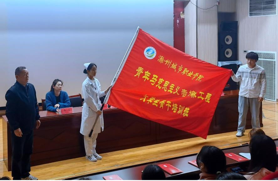 为进一步引领青年学生骨干深入学习贯彻习近平新时代中国特色社会主义思想和党的十九大精神,加强当代青年大学生“学党史、强信念、跟党走”党史学习教育,培养一批德智体美劳全面发展的社会主义建设者和接班人。4月25日下午,学院在四楼报告厅举办“学党史、强信念、跟党走”学习教育暨2021年“青马工程”培训班开班仪式。党委委员、副院长施向阳为开班仪式致辞并授旗,团委书记、定远县池河镇党委副书记周慧,各系团总支书记,2...